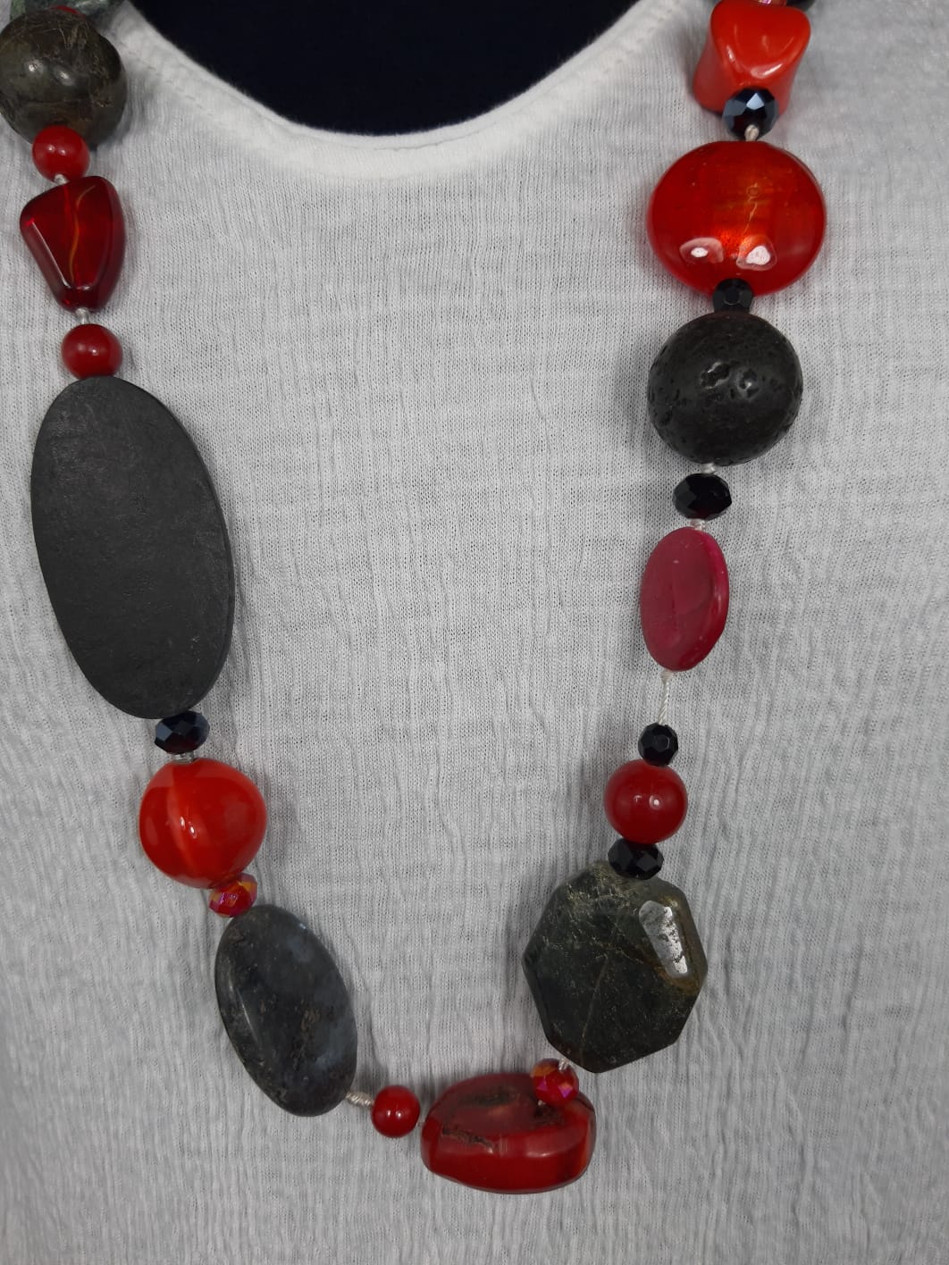 • Kette mit vielen schönen roten grauen und schwarzen Steinen